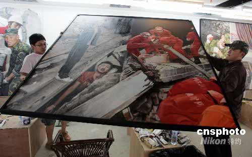 圖:中國油畫家合作抗災(zāi)作品為汶川義拍