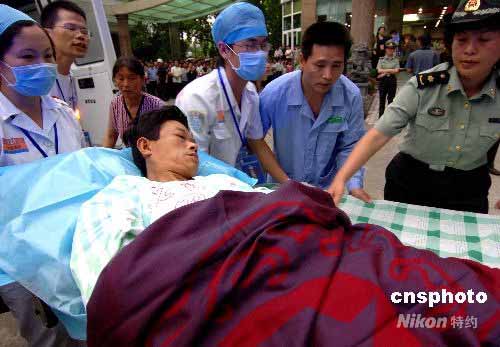 5月25日傍晚,24名四川地震災(zāi)區(qū)重傷員從成都乘坐航班抵達(dá)福州后隨即由救護(hù)車隊(duì)護(hù)送至南京軍區(qū)福州總醫(yī)院僑賓樓接受救治。圖為傷員抵達(dá)南京軍區(qū)福州總醫(yī)院后該院醫(yī)護(hù)人員全力救治每一位來自四川地震災(zāi)區(qū)的傷員。中新社發(fā) 劉可耕 攝