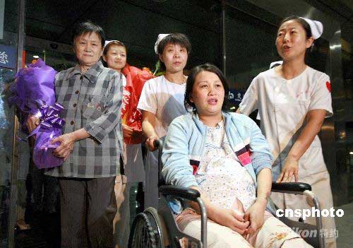 5月27日晚,四川大地震重災區(qū)都江堰市被困50小時孕婦張小艷與父母乘飛機安全抵達烏魯木齊市,該市婦幼保健院派專人前往機場迎接,并將張小艷接入醫(yī)院免費接生。據(jù)了解,地震發(fā)生時,已有8個月身孕的張小艷和母親被掉落的天花板壓住被困50個小時,救援人員發(fā)現(xiàn)后對其實施救援,母子平安奇跡般生還。中新社發(fā) 劉新 攝