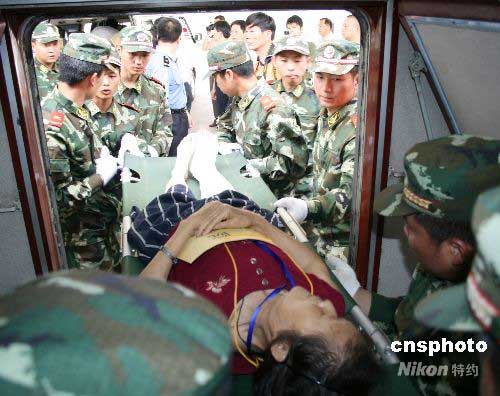 圖:首批130名四川災區(qū)傷員抵達江蘇徐州
