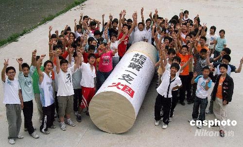 5月31日,安徽淮北市桓譚中學(xué)的學(xué)生們制作了一支巨型“香煙”模型。全校700多名學(xué)生在這支寫有“拒吸第一支煙”的模型上簽名,立志遠離煙草。 2008年5月31日是世界衛(wèi)生組織發(fā)起的第21個世界無煙日。本次無煙日的主題是“無煙青少年”,口號是“禁止煙草廣告和促銷,確保無煙青春好年華”。中新社發(fā) 李博 李春輝 攝