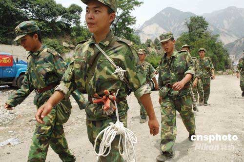 6月2日下午,多支解放軍部隊官兵調(diào)集四川映秀山區(qū),加大地面搜尋失事直升機(jī)力度。圖為一工兵部隊在連續(xù)搜尋數(shù)十個小時未果后進(jìn)行“換防”。5月31日下午,成都軍區(qū)抗震救災(zāi)部隊一架米-171運(yùn)輸直升飛機(jī)在執(zhí)行運(yùn)送第三軍醫(yī)大學(xué)防疫專家到理縣的任務(wù)返回途中,因局部氣候變化,突遇低云大霧和強(qiáng)氣流,于14時56分在汶川縣映秀鎮(zhèn)附近失事。中新社發(fā) 陳文 攝