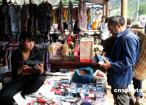 6月8日,濟南軍區(qū)某裝甲團官兵在綿陽市平武縣平通鎮(zhèn)設立了第一家農村集貿市場,幫助受災群眾自力更生。這個市場占地300多平方米,有17個小攤營業(yè),出售各種時令果蔬、肉類、衣服鞋襪以及收音機、手電筒等日用小家電。商品除了當?shù)厣a外,主要從江油市采購,價格比地震前低10%左右。中新社發(fā) 畢華明 攝
