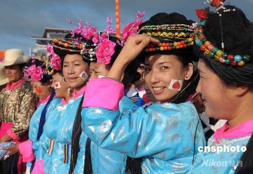 圖:"女兒國"的摩梭女歡慶奧運圣火到來