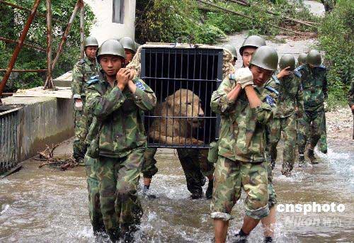 6月13日,什邡市西部驚奇歡樂谷受地震影響被困一個(gè)月的一只白虎和兩只白獅,經(jīng)過空降兵某特種大隊(duì)官兵連續(xù)5晝夜的營救,在民航學(xué)院的協(xié)助下成功空運(yùn)出山,它們將搭乘卡車被送往雅安碧峰峽生態(tài)動(dòng)物園。中新社發(fā) 李良泰張東賀 攝