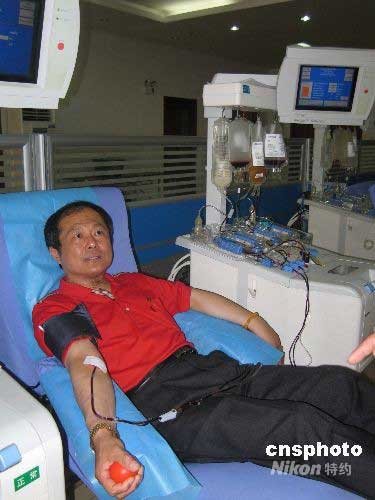 6月14日,堅(jiān)持30年,義務(wù)鮮血超過2萬CC的天津康農(nóng)食品有限公司董事長林易陞走進(jìn)天津市血液中心,以捐獻(xiàn)成分血的實(shí)際行動(dòng),詮釋今年世界獻(xiàn)血者日主題:定期獻(xiàn)血。中新社發(fā) 田齊 攝