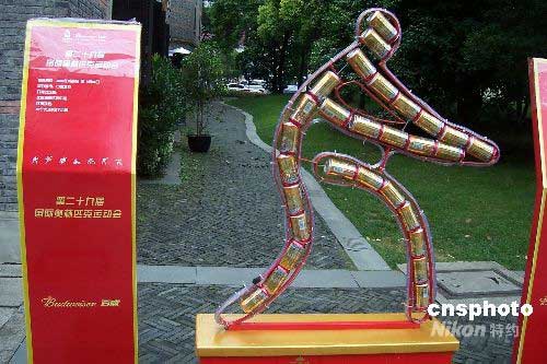 圖:上海易拉罐雕塑展示奧運(yùn)項(xiàng)目