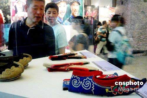 6月15日,北京民族文化宮舉辦的《四川地震災(zāi)區(qū)羌族文化展》吸引眾多參觀者舉辦此次展覽,就是為了搶救、保護(hù)羌族文化遺產(chǎn),讓廣大觀眾更多地了解羌族及其歷史和文化。展覽將通過(guò)“美麗記憶”、“山崩地裂”、“托起明天”三部分,展示羌族生產(chǎn)生活用具和服飾等方面的實(shí)物100余件,有關(guān)羌族文化的圖片資料及記者從抗震救災(zāi)前線(xiàn)拍攝的新聞圖片300余幅,以及地震發(fā)生以前羌族珍貴紀(jì)錄片。圖為展覽展示羌族生活用具和民族服飾品。中新社發(fā) 錢(qián)興強(qiáng) 攝