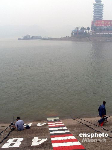 2008年6月17日,進(jìn)入2008年汛期的長江三峽入庫流量首次突破20000立方米/秒,達(dá)到20500立方米/秒;葛洲壩出庫流量達(dá)20200立方米/秒,長江中游湖北宜昌水位漲至46.11米,與6月15日相比,水位上漲約1米。據(jù)長江航道局稱,近期長江干流水位持續(xù)上漲,為確保長江航道安全暢通,長江航道局加強了汛期航道維護(hù)工作。中新社發(fā) 劉君鳳 攝