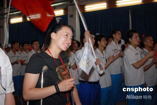 6月19日,殘疾少女、奧運(yùn)火炬手金晶來到上海市未成年犯管教所,與“失足少年”暢談傳遞奧運(yùn)火炬心得,她希望奧運(yùn)精神能使“大墻內(nèi)的少年們”得到靈魂的洗禮。中新社發(fā) 張亨偉 攝