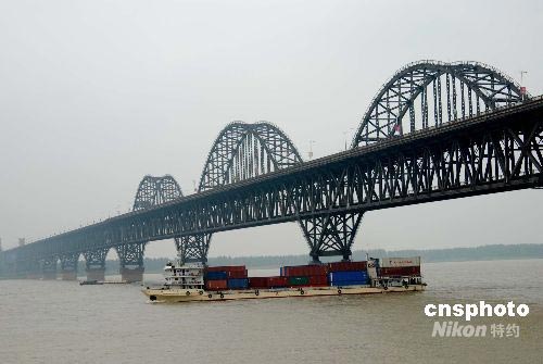 受第6號臺風(fēng)“風(fēng)神”影響,江西省連日遭強(qiáng)降雨襲擊,導(dǎo)致長江江西九江段水位持續(xù)上漲。6月27日,一艘大型貨輪通過九江長江大橋時,水位到達(dá)17.3米。雖然距離警戒水位20米還有一定的距離,但由于上游長時間的降雨,長江江西九江段的水位目前正以每天20厘米的高度上漲。九江市各相關(guān)部門已經(jīng)做好準(zhǔn)備隨時應(yīng)對各種突發(fā)事件。中新社發(fā) 胡國林 攝