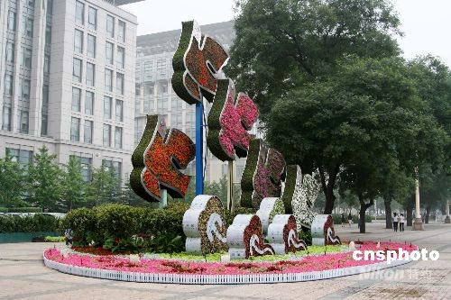 2008年6月30日,奧運鳥花壇亮相北京西單。這個花壇由5只鳥形的小花壇組成,每只鳥的顏色各異,高度也不同,高高矗立,甚是美觀。 中新社發(fā) 任丘 攝