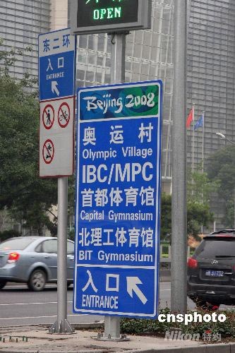 圖:奧運專用指路標(biāo)識亮相北京街頭