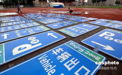 奧運(yùn)臨近,中國(guó)農(nóng)業(yè)大學(xué)摔跤館的工作人員正在緊張布置奧運(yùn)相關(guān)設(shè)施。距離北京奧運(yùn)會(huì)開幕僅剩一個(gè)多月的時(shí)間,許多奧運(yùn)場(chǎng)館正在有條不紊的進(jìn)行收尾工作。中新社發(fā) 王東明 攝