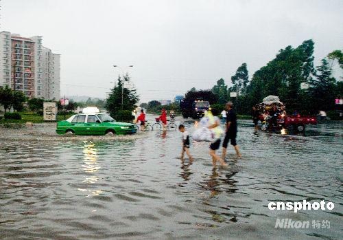 7月20日傍晚,四川眉山市遭受強暴雨襲擊。眉山市主城區(qū)兩小時內的降雨量達到151毫米,造成城區(qū)多處內澇。中新社發(fā) 堯遙 攝