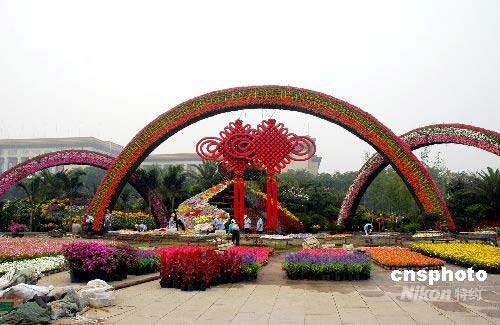 7月25日,北京天安門廣場(chǎng)西側(cè)以彩虹門和中國結(jié)的組合造型花壇亮相,具有獨(dú)特的中國風(fēng)味,吸引眾多游客。據(jù)了解,今年天安門廣場(chǎng)花壇創(chuàng)下歷年之最,持續(xù)時(shí)間最長(zhǎng),花材用料最多,達(dá)到100萬盆,80余種。中新社發(fā) 張雙雙 攝