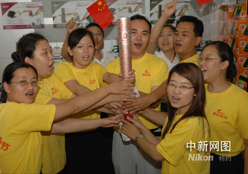 7月26日,河北滄州市某雷鋒志愿者組織的志愿者們親手觸摸到了火炬手曾傳遞過(guò)的“祥云”火炬,感悟火炬?zhèn)鬟f精神,激發(fā)干好本職工作的熱情,提高服務(wù)質(zhì)量,以實(shí)際行動(dòng)為奧運(yùn)加油。 王少華 攝