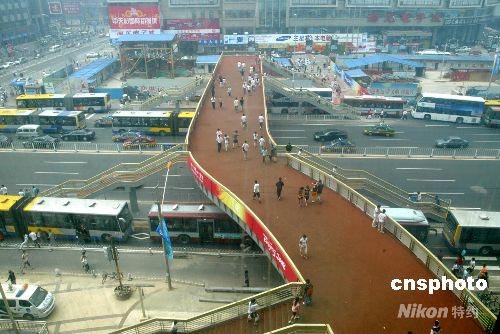 近日,北京市目前最寬的人行過街天橋在中關(guān)村核心商圈建成并正式投入使用,到中國高新電子產(chǎn)品集散地——中關(guān)村選購物品的顧客今后不必再穿行車水馬龍的中關(guān)村大街。人行過街天橋的建成將有效解決中關(guān)村地區(qū)人車混行、交通擁堵和行人過街不便的狀況,緩解當?shù)亟煌▔毫。中新社發(fā) 富田 攝