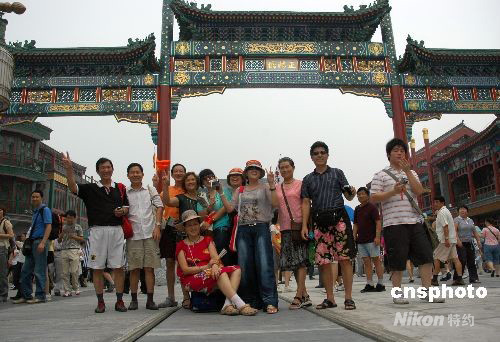 8月7日,北京前門大街在經(jīng)歷一年多時(shí)間的保護(hù)、修繕后正式開街,F(xiàn)有12家商戶開張營業(yè),預(yù)計(jì)奧運(yùn)會(huì)之后將全面開市。開街后,前門大街將實(shí)行24小時(shí)全時(shí)段全覆蓋精細(xì)化城管執(zhí)法模式。當(dāng)日眾多游人前來參觀前門大街。中新社發(fā) 張雙雙 攝
