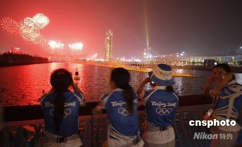 8月8日,2008北京奧運(yùn)會開幕式在北京國家體育場“鳥巢”拉開帷幕,“鳥巢”上空升起絢麗的煙花。中新社發(fā) 盛佳鵬 攝
