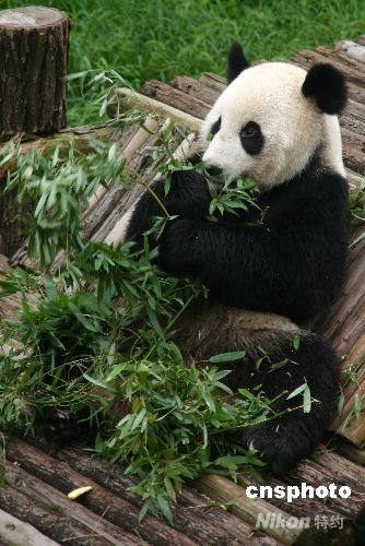 2008年8月31日,南京紅山森林動(dòng)物園提前一天為四川臥龍大熊貓美靈過生日。9月1日迎來熊貓美靈的四周歲生日,為讓它第一次在異鄉(xiāng)愉快地過生日,動(dòng)物園方面精心準(zhǔn)備,邀請(qǐng)了市民和小朋友們?yōu)槊漓`做生日蛋糕。中新社發(fā) 阿董 攝