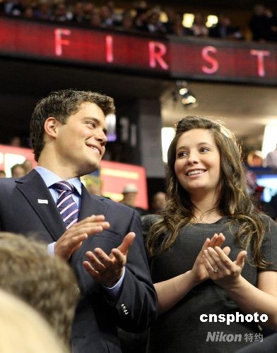 美國阿拉斯加州州長薩拉·佩林,九月三日在明尼蘇達州州府圣保羅舉行的共和黨全國代表大會上發(fā)表接受提名演說,成為共和黨歷史上首位女副總統(tǒng)候選人。中新社發(fā) 李靜 攝