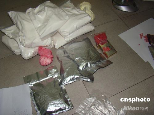 ?诰骄旁滤娜展计偏@一起特大販賣(mài)毒品的案件,繳獲毒品十公斤,抓捕毒販?zhǔn),是今年以?lái)海南省破獲的最大宗販毒案,毒品品種包括海洛因、冰毒、K粉、搖頭丸等六七個(gè)品種。中新社發(fā) 王辛莉 攝