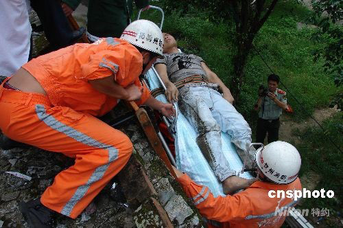 九月九日中午兩點(diǎn)多,廣西欽州市消防官兵在前進(jìn)路兩幢樓房的墻縫中救出一被困者,經(jīng)警方辨認(rèn),這名獲救者正是當(dāng)日凌晨警方在追捕時(shí),在四樓忽然“消失”掉的竊賊。圖為消防官兵將竊賊從二樓抬下地面。 中新社發(fā) 田華松 攝
