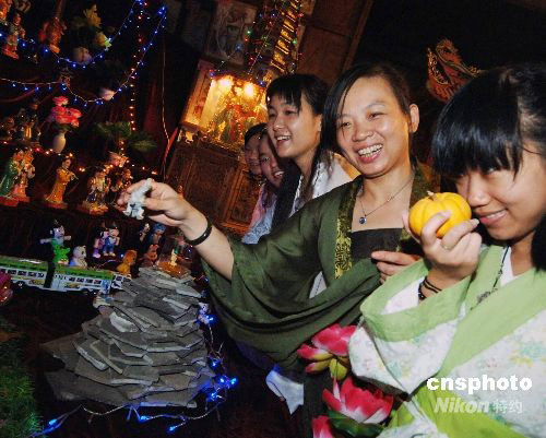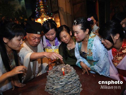 9月13日,五十多名福建漢服愛(ài)好者在福州名勝裴仙宮舉行擺塔慶中秋,重現(xiàn)福州民俗。據(jù)傳“擺塔”源于明嘉靖年間戚繼光奉命來(lái)閩抗倭,連打幾場(chǎng)大勝戰(zhàn)。有一次正逢中秋節(jié),為慶祝勝利,人們把古玩等擺在廳堂供人欣賞。過(guò)去福州的塔比較多,擺設(shè)品多為古塔狀,故稱“擺塔”。中新社發(fā) 劉可耕 攝