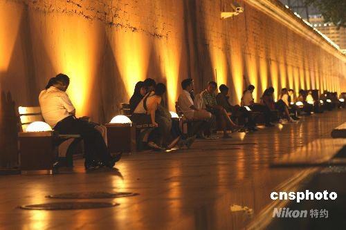 九月十四日,成雙成對的青年情侶依偎在北京皇城根下,共賞中秋明月,共度美好時(shí)光。中新社發(fā) 史利 攝