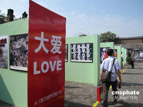 為紀(jì)念四川大地震,攝影展專設(shè)了特別展區(qū)展出了抗震救災(zāi)的諸多感人的照片。