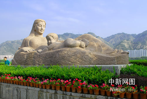 雕塑由甘肅著名的雕塑家何鄂女士創(chuàng)作,北京雕塑廠于1986年4月30日雕成,系一長6米,寬2.2米,高2.6米的花崗巖圓雕,總重40余噸。由“母親”和一“男嬰”組成構(gòu)圖。