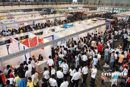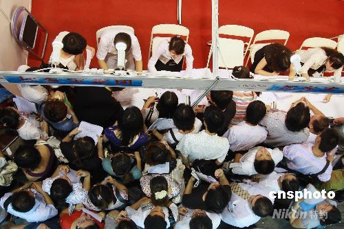 9月21日,北京奧運會后首場大型綜合招聘會在中國國際展覽中心火爆開展,截至上午,招聘會已吸引了近2萬名求職者。此次招聘會是第29屆“共創(chuàng)未來”人才招聘會,近600家用人單位提供了5000余個職位,招聘會將會持續(xù)到22日下午4時,預(yù)計兩天內(nèi)將至少迎來近10萬名求職者。中新社發(fā) 鄭雄增 攝