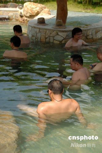 9月21日,廣東森波拉首屆“天體沐浴節(jié)”在一度假森林火山溫泉揭開神秘面紗,100多名“歡樂(lè)男女”沐浴在陽(yáng)光、泉水、竹林花香中!疤祗w浴”被當(dāng)作一種回歸自然和享受健康的方式在廣東逐漸被大眾所接受。中新社發(fā) 梁永強(qiáng) 攝