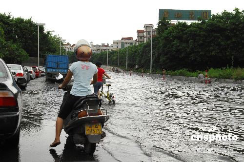 第14號強(qiáng)臺風(fēng)“黑格比”9月24日清晨6點(diǎn)45分在廣東省電白縣陳村鎮(zhèn)海面登陸。省會廣州受臺風(fēng)影響出現(xiàn)大風(fēng)暴雨,行人出行受阻。中新社發(fā) 侯宇 攝