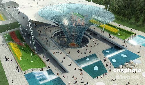 2010年上海世博會(huì)中央景觀道路“世博軸”進(jìn)入全面施工階段,圖為首次公布的“世博軸”主出入口“陽(yáng)光谷”造型效果。據(jù)介紹,“世博軸”的一端也是上海世博園區(qū)的主出入口,整個(gè)“世博軸”在入口及沿途共設(shè)6個(gè)巨型圓錐狀“陽(yáng)光谷”!瓣(yáng)光谷”采用鋼結(jié)構(gòu),其功能是讓自然光透過(guò)透明“圓錐”傾瀉入地下,滿足部分地下空間的采光,實(shí)現(xiàn)節(jié)能環(huán)保。 中新社發(fā) 世博局 攝