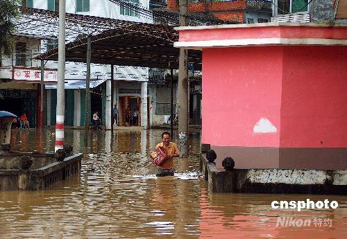 受“黑格比”影響,地處中越邊境的廣西龍州縣受來(lái)自越南水口河、平兒河兩河水暴漲影響,9月26日左江龍州水文站水位達(dá)116.21米,并以每小時(shí)0.52米的速度上漲。至當(dāng)天下午18點(diǎn),水位已達(dá)120.01米,造成龍州縣城的青龍橋、合龍街、白沙街、利民街等部分低洼地段民房、商鋪受淹。由于預(yù)防措施到位,及時(shí)轉(zhuǎn)移物品,損失不大。但沿江的上金鄉(xiāng)農(nóng)作物部分受淹。沒有人員傷亡報(bào)告。圖為青龍橋路段受淹,居民在趟水搶救物品。中新社發(fā) 馮文 攝