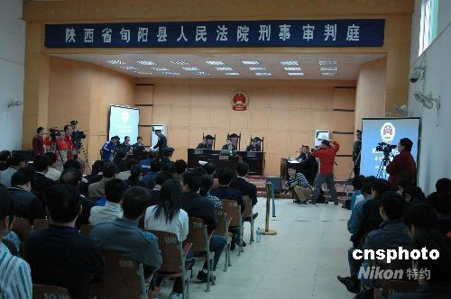9月27日上午,陜西省安康市旬陽縣人民法院公開開庭審理“華南虎照”造假者周正龍涉嫌詐騙罪和非法持有彈藥罪一案。中新社發(fā) 鄧浩軍 攝