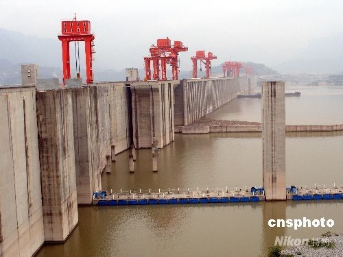 9月27日下午,據(jù)中國(guó)長(zhǎng)江三峽工程總公司消息,經(jīng)國(guó)務(wù)院批準(zhǔn),三峽工程從9月28日零點(diǎn)起試驗(yàn)性蓄水,三峽壩前水位由145米水位開始抬升,至10月6日左右攀高至156米,再根據(jù)實(shí)際蓄水情況經(jīng)國(guó)務(wù)院審批看是否進(jìn)一步提高水位至175米。中新社發(fā) 劉君鳳 攝
