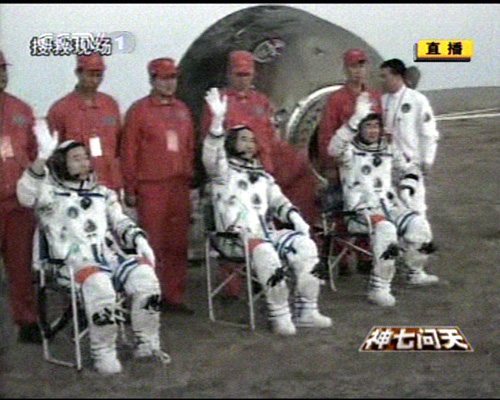 9月28日,神舟七號飛船返回艙順利著落,三名航天員翟志剛、劉伯明、景海鵬在經(jīng)過15-20分鐘的重力再適應后全部出艙。首先出艙的是翟志剛,第二個出艙的是劉伯明,第三個出艙的是景海鵬。