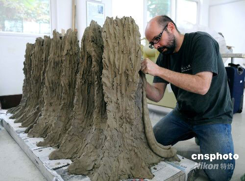 “十一”黃金周期間,來自美國、希臘、韓國、阿根廷等7個國家的16名陶藝大師會聚山東省淄川李梓源藝術(shù)中心切磋技藝,展示陶藝絕活。圖為美國檀香山夏威夷大學副教授、陶藝家布萊德·伊萬·泰勒正在創(chuàng)作作品。中新社發(fā) 閆盛霆 攝