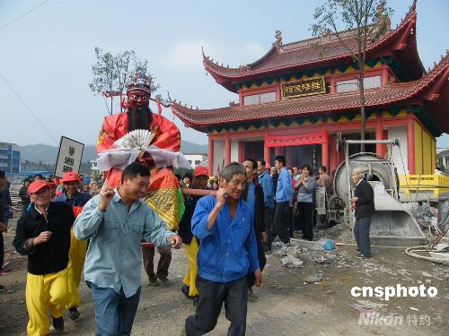 10月7日,農(nóng)歷戊子重陽節(jié),也是西漢從創(chuàng)立到穩(wěn)定的重要將領(lǐng)、舞陽侯樊噲誕辰2250年紀念日,他的故鄉(xiāng)浙江德清上柏百姓舉行重陽廟會以示紀念,祈求國家繁榮昌盛,人民安居樂業(yè)、富裕祥和。中新社發(fā) 陳德明 攝