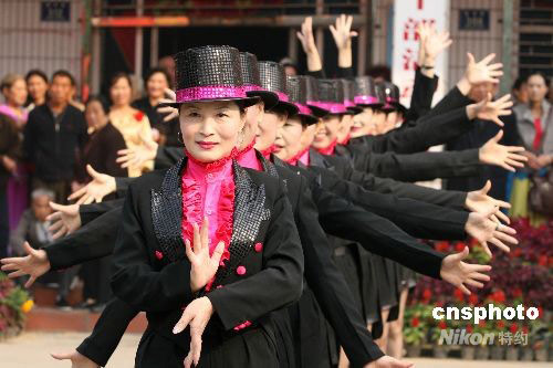 10月7日,河南許昌100多位退休老人歡聚一堂,在“慶祝九九老人節(jié)”文藝表演活動(dòng)中載歌載舞,盡情展示自己的快樂(lè)和自信。中新社發(fā) 牛書(shū)培 攝
