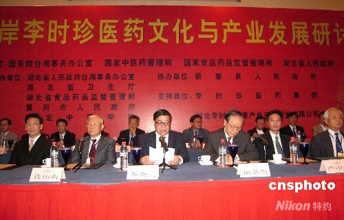 十月九日,海峽兩岸李時(shí)珍醫(yī)藥文化與產(chǎn)業(yè)發(fā)展論壇在武漢開幕。中共湖北省委常委、統(tǒng)戰(zhàn)部長蘇曉云,臺(tái)灣新黨主席郁慕明,臺(tái)灣新同盟會(huì)會(huì)長許歷農(nóng)等出席并致辭。兩岸三地及海外李時(shí)珍醫(yī)藥文化研究機(jī)構(gòu)、團(tuán)體、高校、醫(yī)藥生產(chǎn)制造企業(yè)相關(guān)負(fù)責(zé)人四百余人與會(huì)。中新社發(fā) 艾啟平 攝