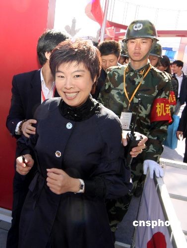 2008年10月10日,第八屆北京圖書(shū)節(jié)在地壇公園隆重開(kāi)幕。北京師范大學(xué)教授、有“學(xué)術(shù)超女”之名的于丹在圖書(shū)節(jié)簽名售書(shū)。主辦方請(qǐng)來(lái)多名頭戴鋼盔的保安在現(xiàn)場(chǎng)維持秩序,保護(hù)于丹人身安全。中新社發(fā) 吳芒子 攝