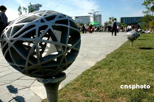 2008年10月11日,免費(fèi)對(duì)外開放的國(guó)家體育場(chǎng)“鳥巢”,在周末出現(xiàn)游客“井噴”!傍B巢”在被20萬多游客“擠爆”的同時(shí),遭受了不文明行為傷害,安裝在國(guó)家體育場(chǎng)(“鳥巢”)旁廣場(chǎng)的“鳥巢”照明燈傷痕累累。據(jù)介紹,“鳥巢”景觀燈材質(zhì)采用環(huán)保樹脂材料,奧運(yùn)前夕,“鳥巢”廣場(chǎng)核心區(qū)安了1300多只景觀燈,大“鳥巢”與小“鳥巢”交相呼應(yīng),營(yíng)造出和諧氛圍。中新社發(fā) 梁寶海 攝