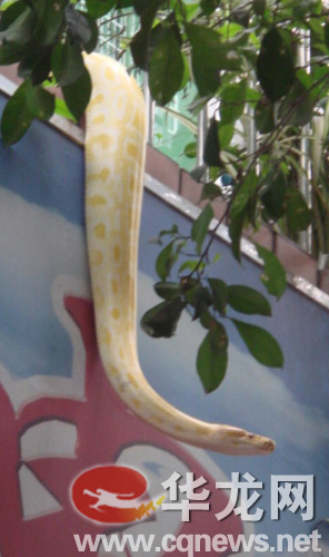 據(jù)江津區(qū)森林公安局一負責(zé)人介紹,這條蛇學(xué)名叫做黃金蟒,是一種變異蛇,屬于緬甸的引進種,屬于國家的一類保護動物。(見習(xí)記者何青枚 通訊員楊偉)