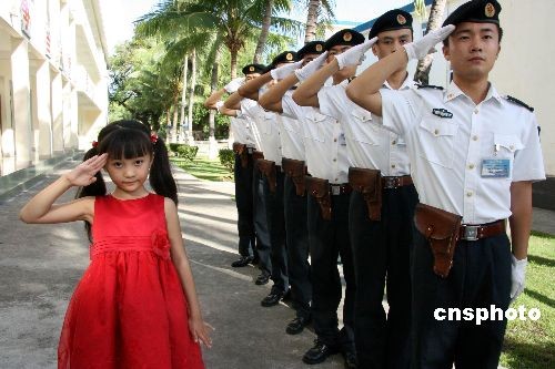 10月21日下午,在北京奧運(yùn)開幕式上一曲成名的小女孩林妙可,利用參加三亞城市精神評(píng)選活動(dòng)暨奧運(yùn)冠軍三亞行晚會(huì)之際,來(lái)到海軍駐南國(guó)三亞某保障基地標(biāo)桿式單位警勤邊參觀。到該連后,林妙可在趙勛兵副連長(zhǎng)的帶領(lǐng)下,參觀了連隊(duì)內(nèi)務(wù)、健身房、榮譽(yù)室。中新社發(fā) 郜宏亮 攝