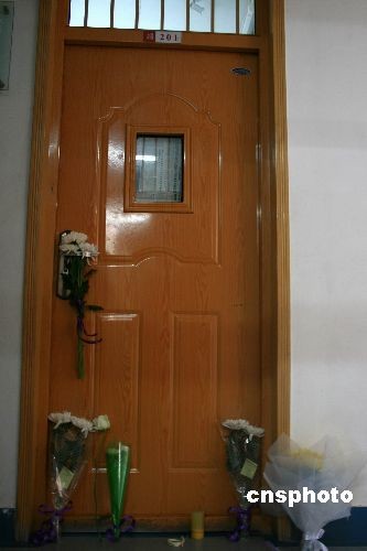 2008年10月29日下午,中國政法大學(xué)師生在慘案發(fā)生地點法大端201教室擺放鮮花寄托對遇難老師的沉痛哀思。28日晚上6點40分左右,中國政法大學(xué)昌平校區(qū)端升樓201室內(nèi),該校法學(xué)院教授程春明在上課前,被一個手持菜刀沖入教室的人砍倒,隨后不治身亡。據(jù)該校目擊學(xué)生稱,嫌疑人為該校政管學(xué)院大四學(xué)生。中新社發(fā) rain 攝