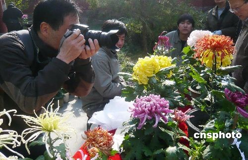 11月1日,為期20天的第29屆北海公園菊花展在北京皇家園林北海闡福寺開幕,2008北海公園菊花展以“鳳舞金秋妍”為主題,共展出500余個品種的2萬多盆菊花,主展區(qū)采用鮮切花方式裱扎楷、草、篆、隸四種不同字體的“菊”字,并設置六大展室,展出的品種有大立菊、盆景菊、懸崖菊、造型菊及藝菊小品等。中新社發(fā) 錢興強 攝